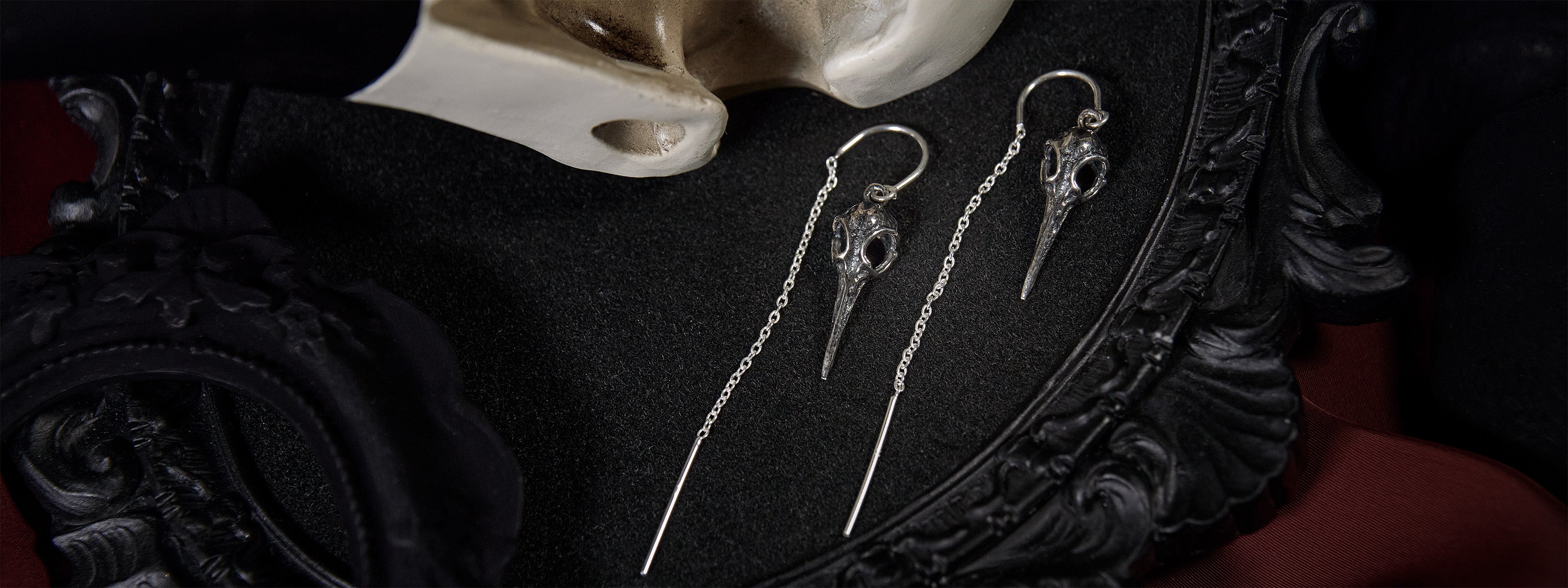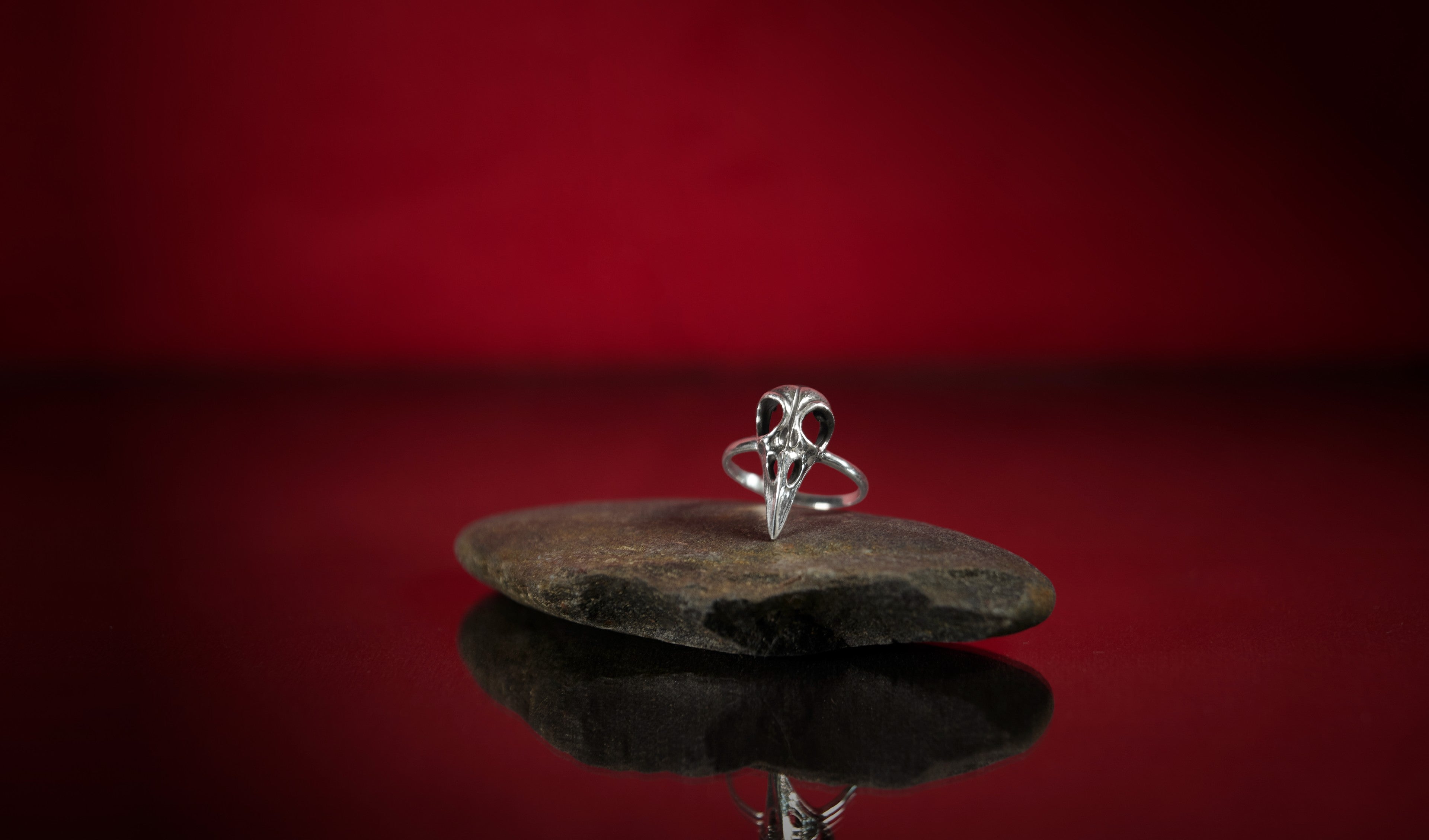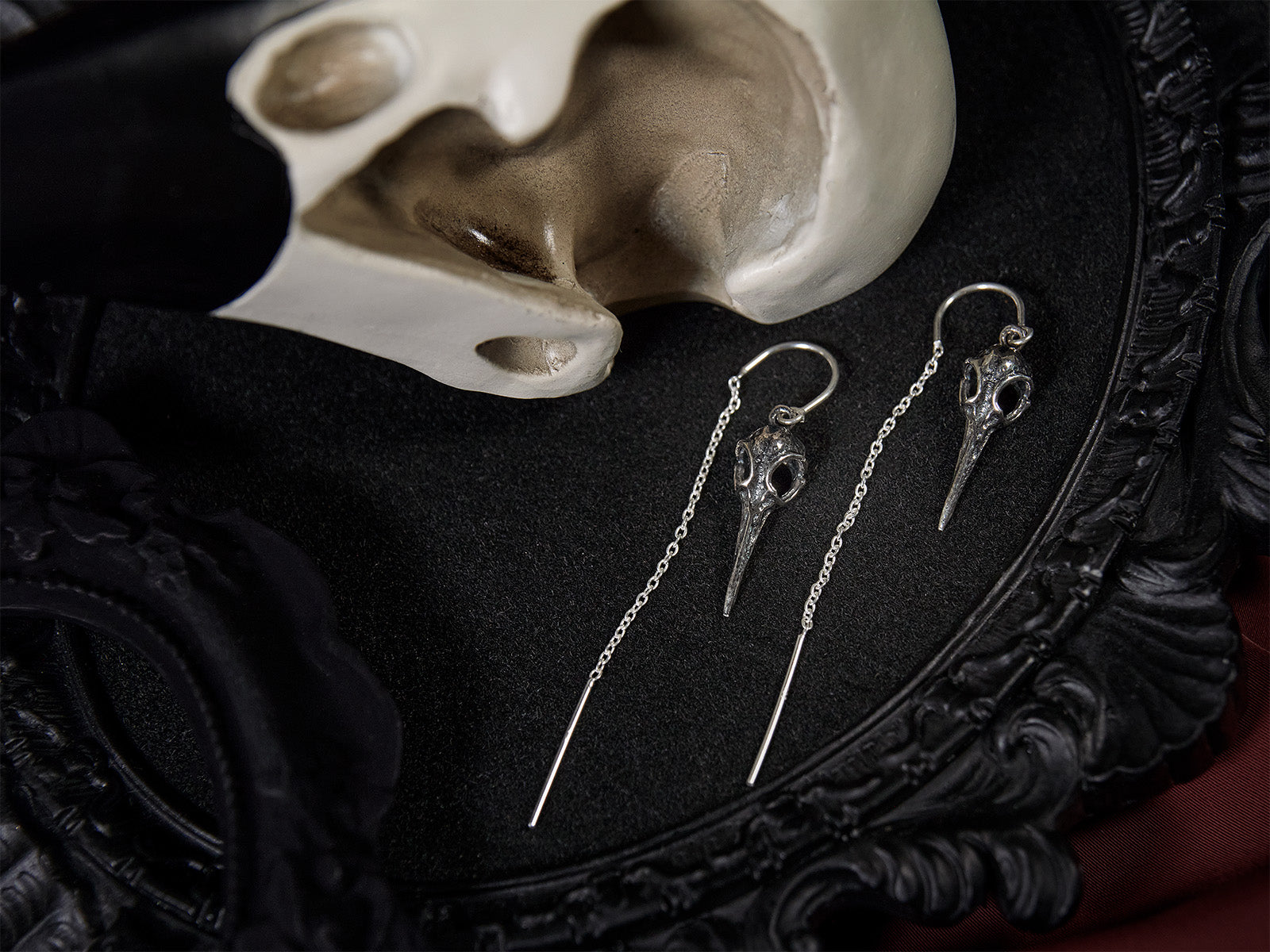 This 3D bronze bird skull pendant features authentic-looking pitting and details.